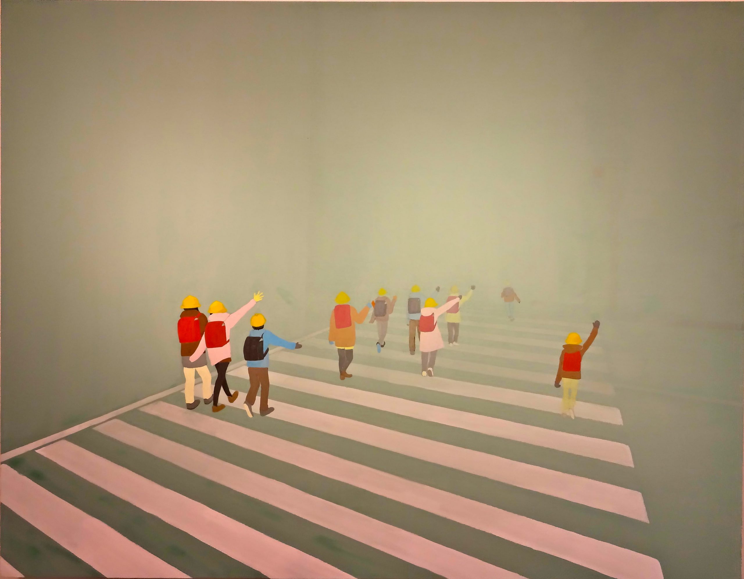 水干絵の具、アクリル絵の具、メディウム、和紙